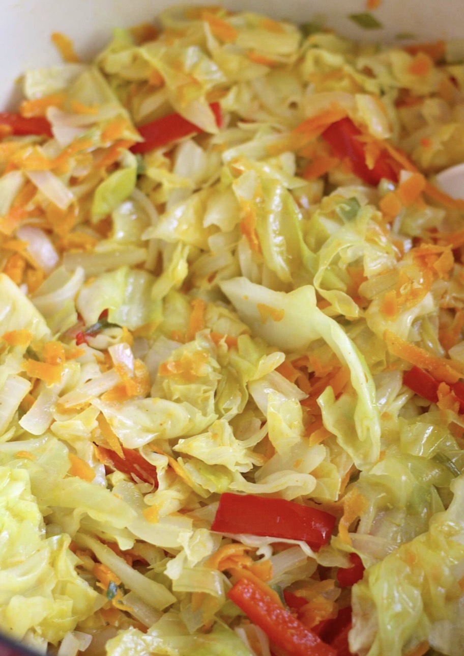 Tender cabbage and carrots sautéed with seasoning for a light, flavorful side.
