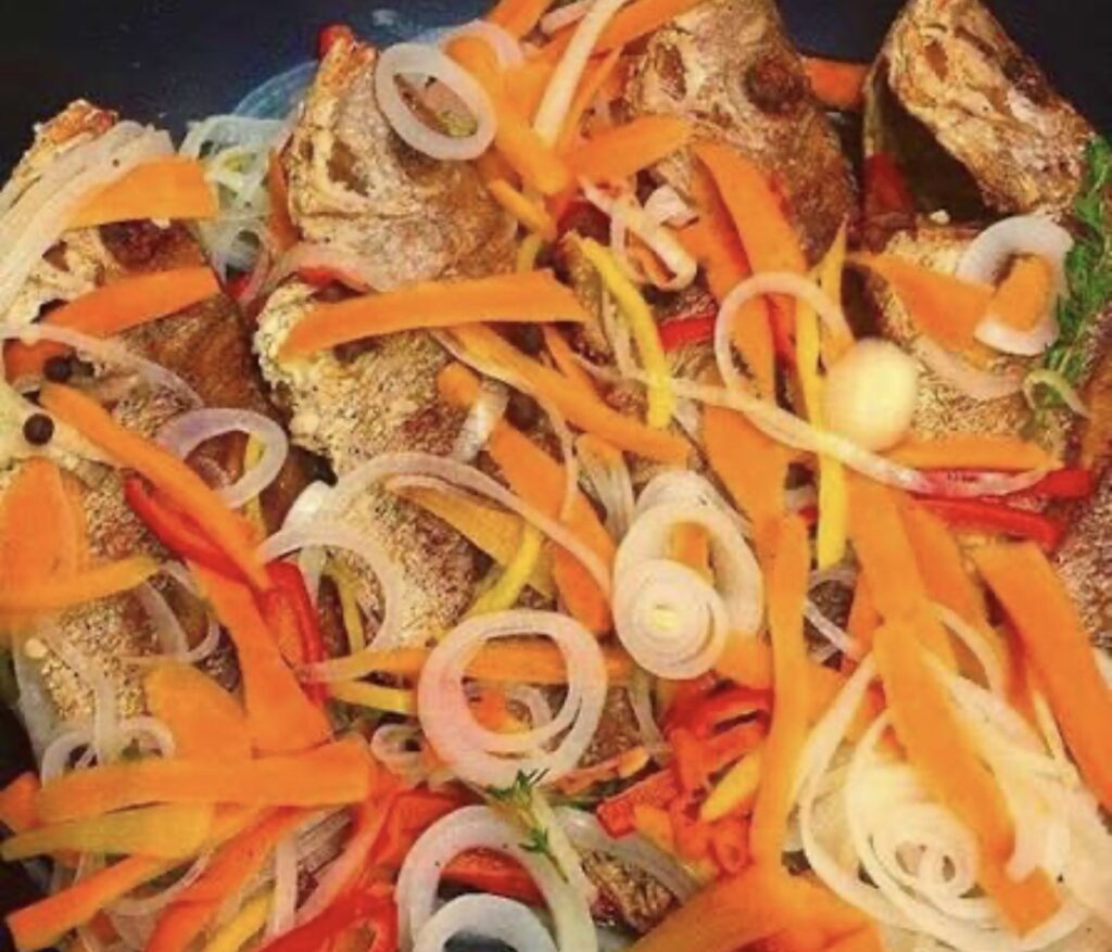 Crispy fried snapper covered in vinegar, sautéed onion, bell peppers, carrots, and habanero pepper.
