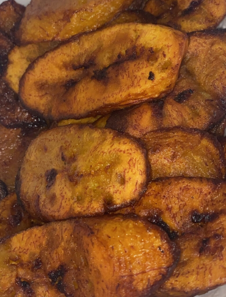 Golden-fried ripe plantains — caramelized, sweet, and perfectly complementing every dish.