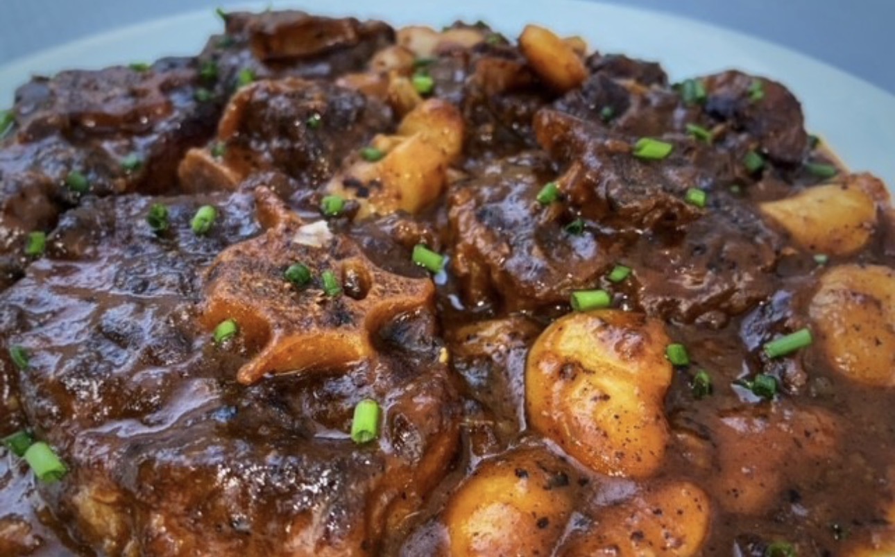 Fall-off-the-bone oxtail slow-cooked with butter beans and thyme in rich, savory gravy.