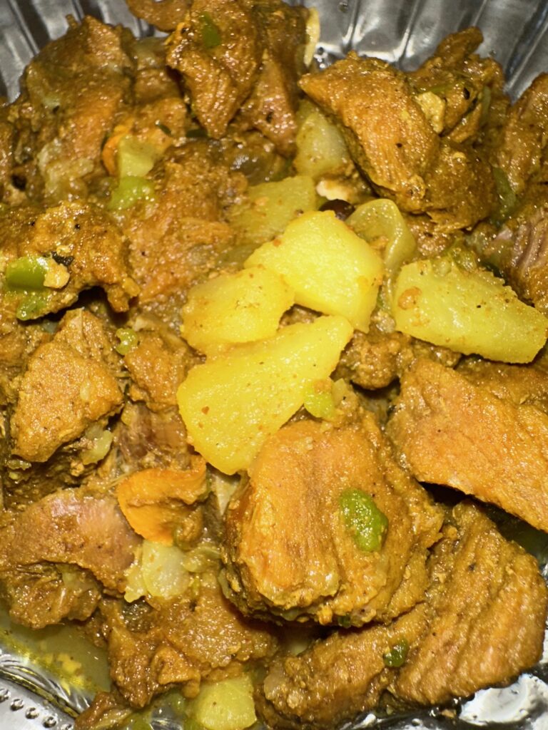 Tender goat slow-simmered in fragrant island curry with potatoes and scotch bonnet.