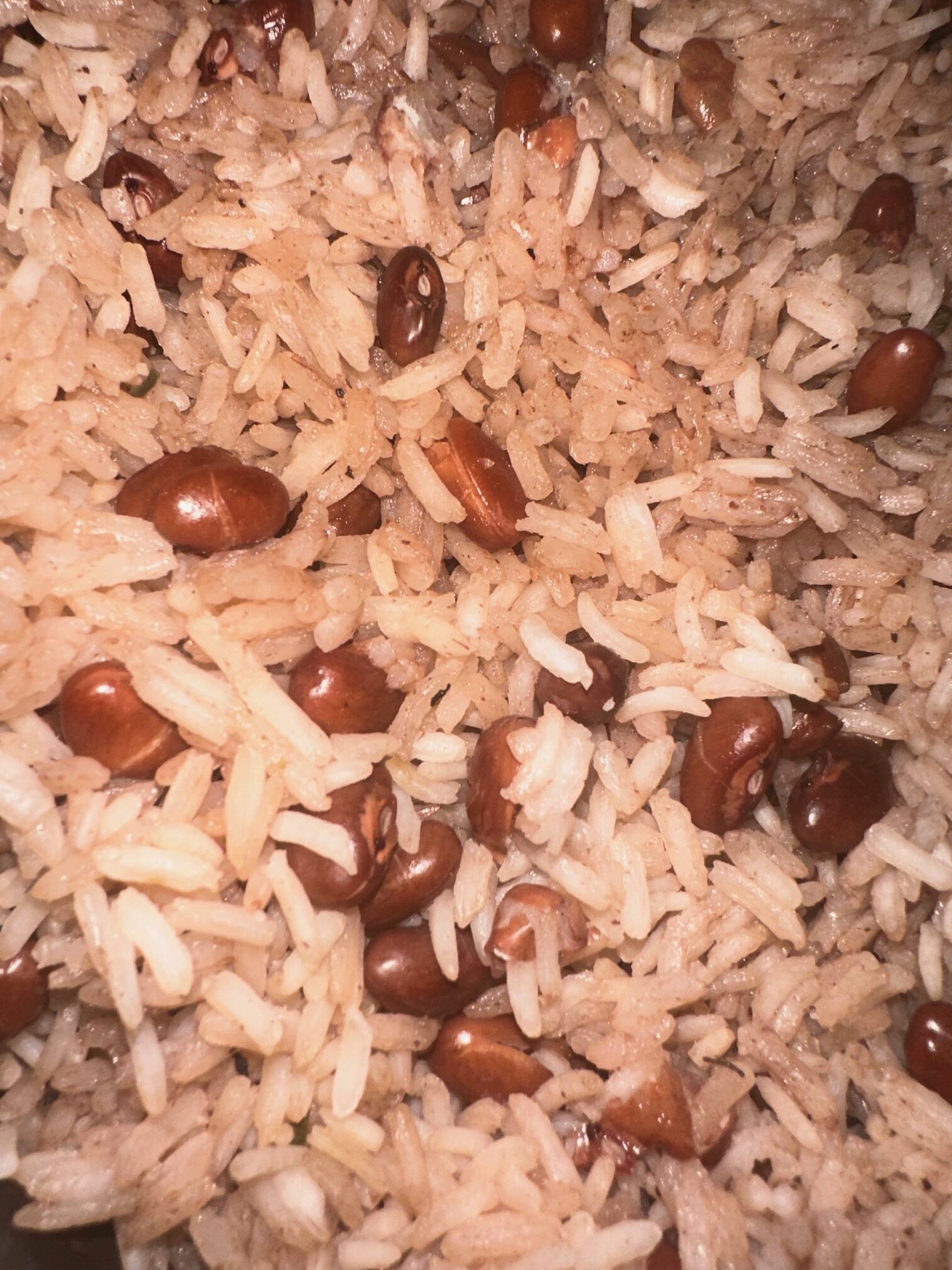 Coconut-infused rice with Red beans — the cornerstone of every Jamaican feast.